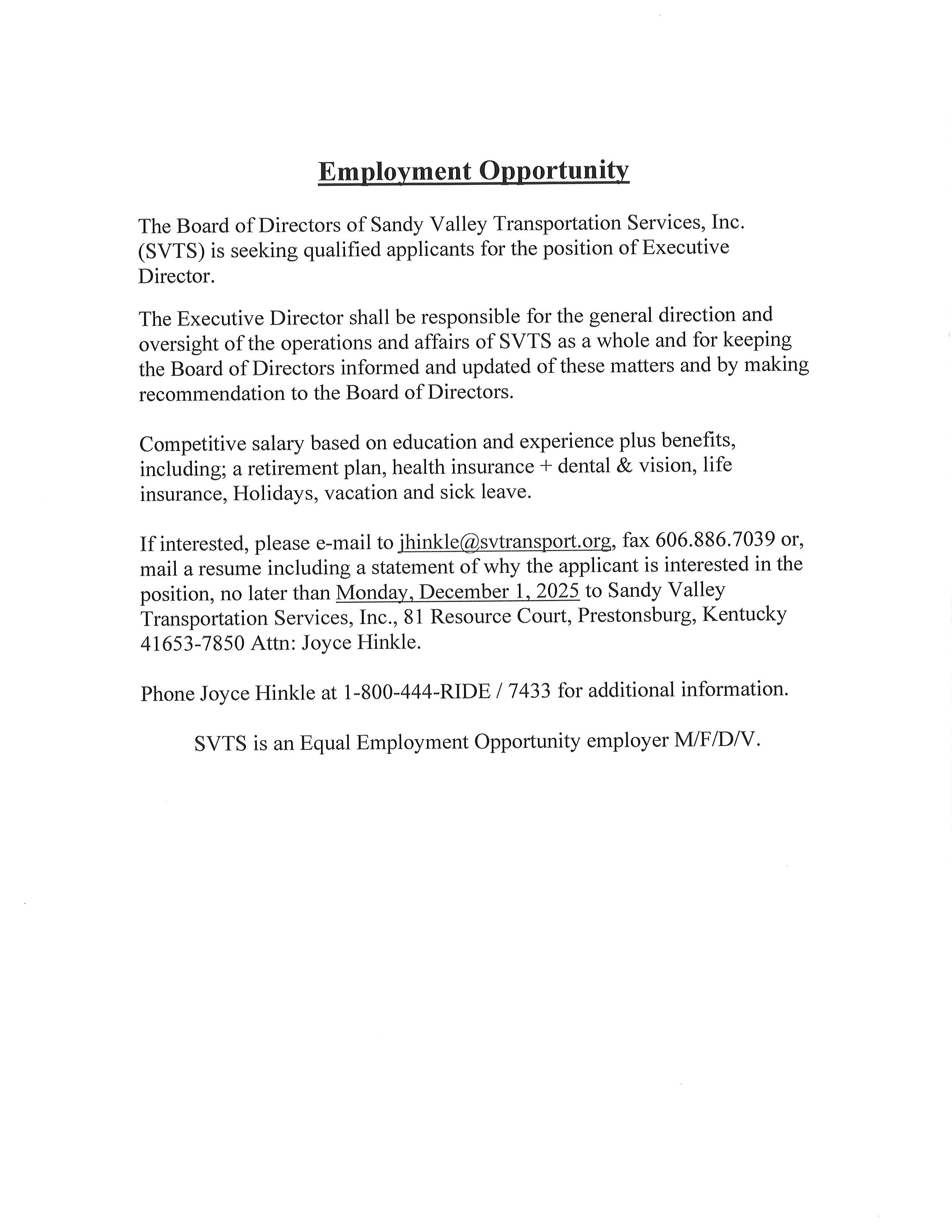 Sandy Valley Transportation Services, Inc.(SVTS) operates its programs and services without